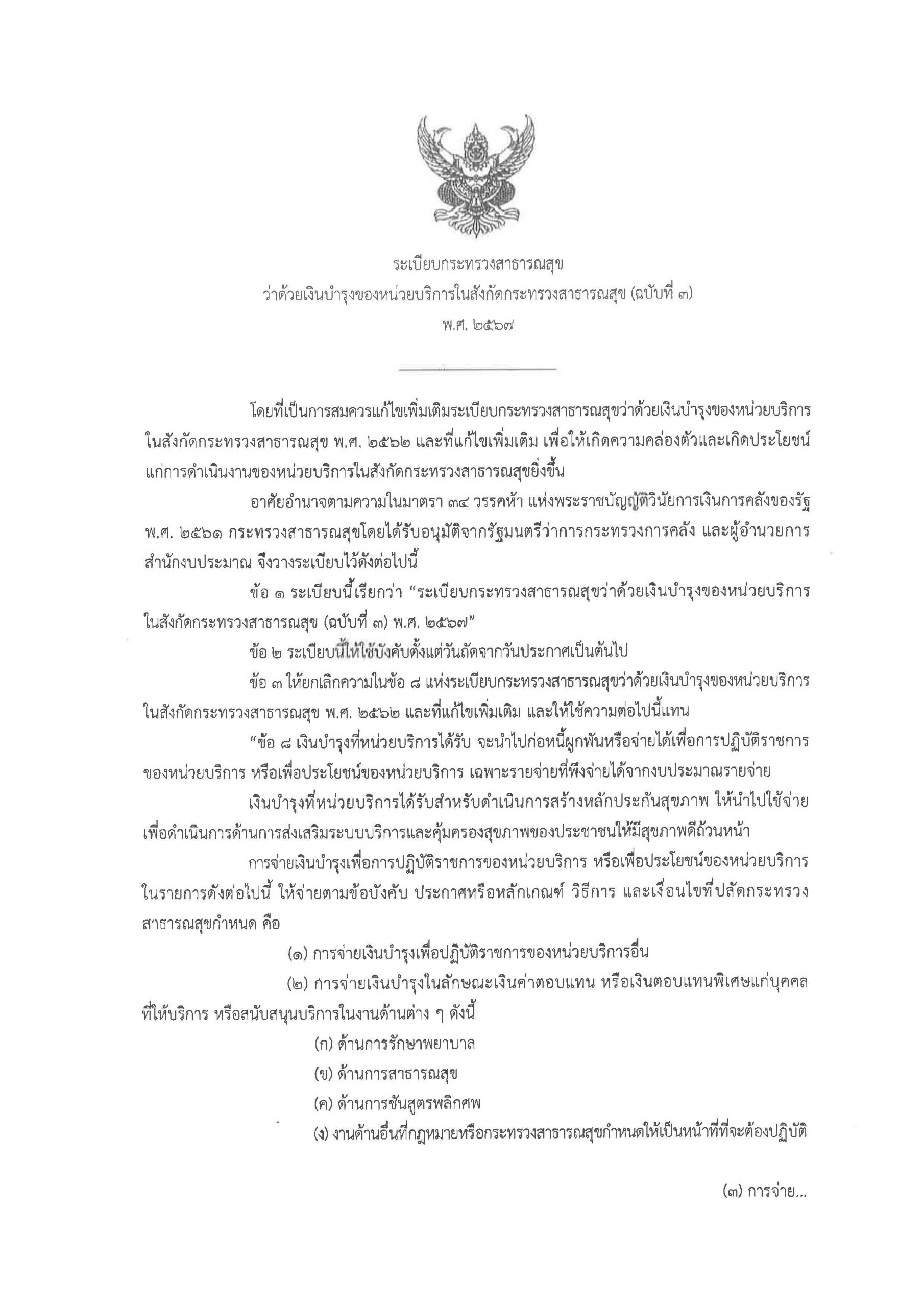 ระเบียบ กสธ. ว่าด้วยเงินบำรุงของหน่วยบริการในสังกัดกระทรวงสาธารณสุข (ฉบับที่ 3) พ.ศ2567_Page_1