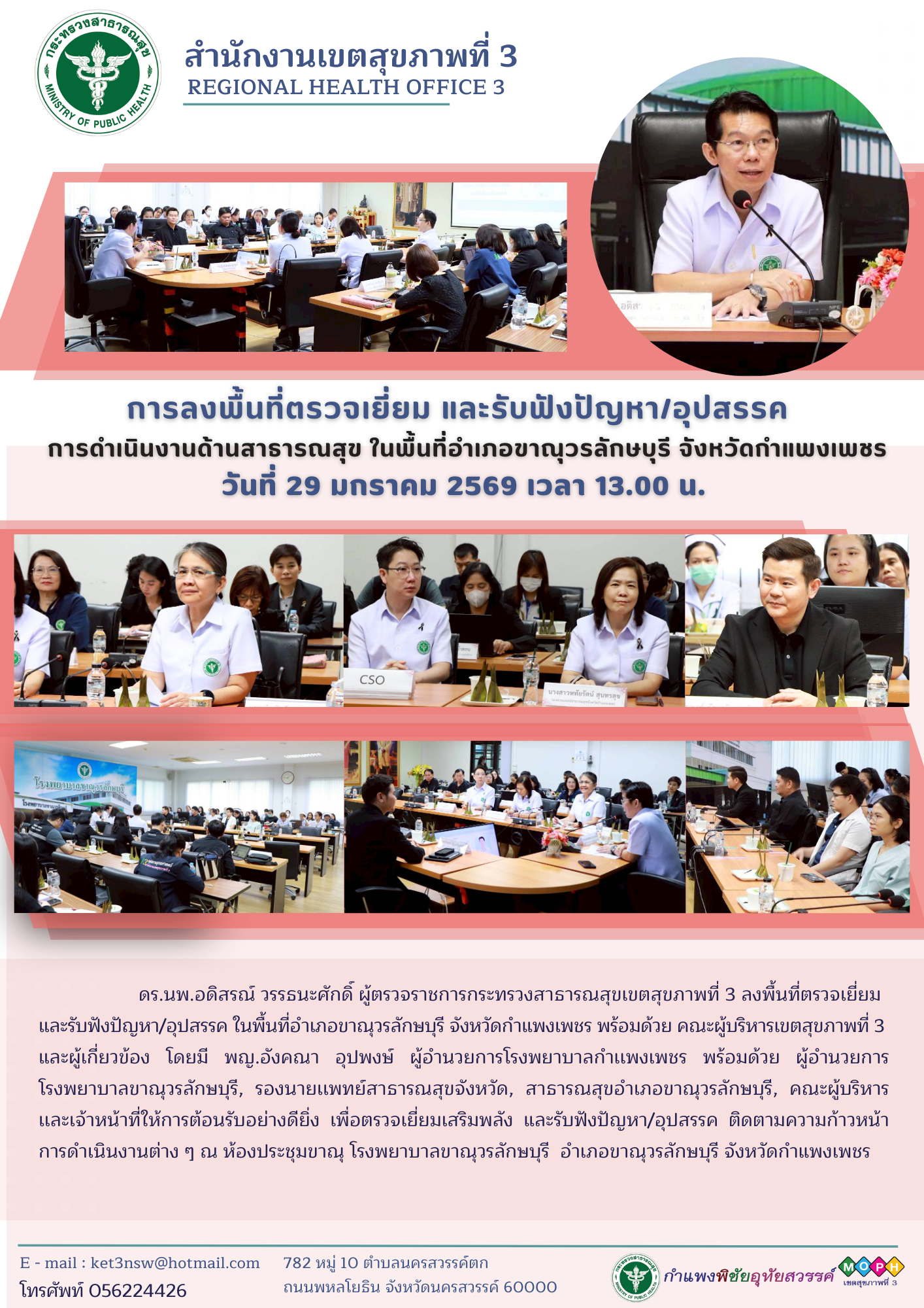 ลงพื้นที่ตรวจเยี่ยม และรับฟังปัญหา/อุปสรรค ในพื้นที่อำเภอขาณุวรลักษบุรี จังหวัดกำแพงเพชร