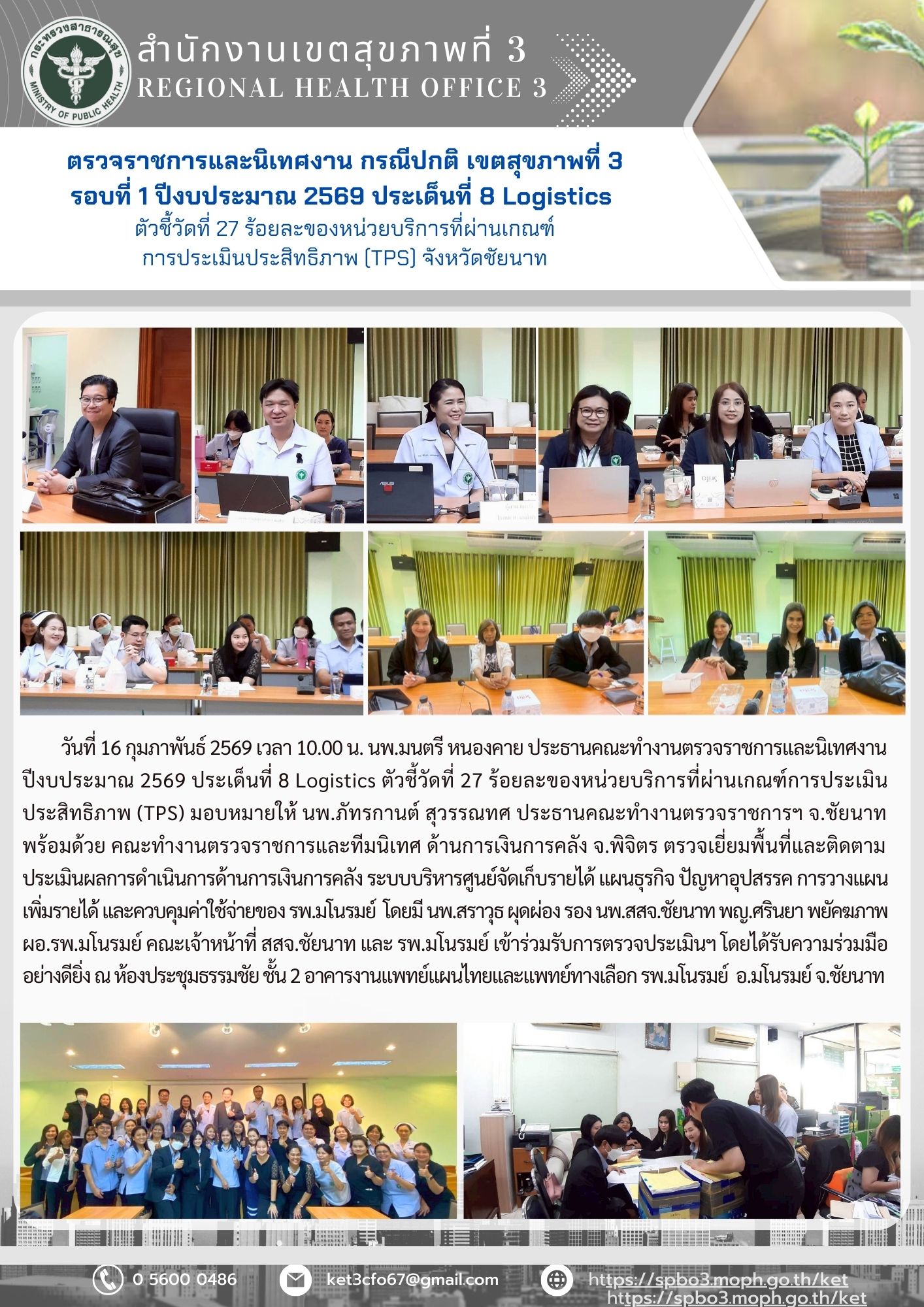 ตรวจราชการและนิเทศงาน กรณีปกติ รอบที่ 1/2569 ประเด็นที่ 8 ตัวชี้วัดที่ 27 ด้านการเงินการคลัง วันที่ 10 กุมภาพันธ์ 2569 ณ รพ.มโนรมย์ จ.ชัยนาท