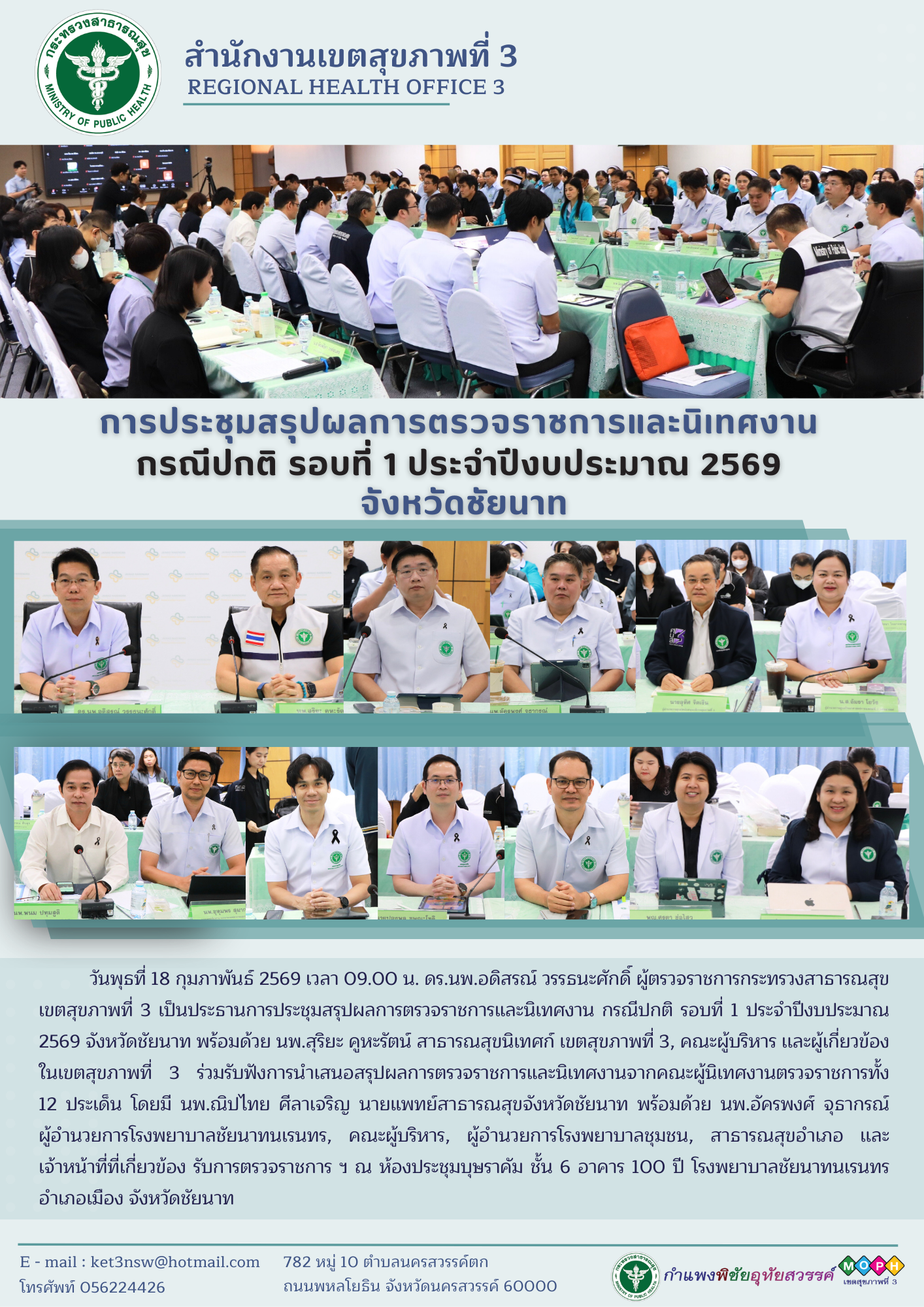 การประชุมสรุปผลการตรวจราชการและนิเทศงาน กรณีปกติ รอบที่ 1 ประจำปีงบประมาณ 2569 จังหวัดชัยนาท
